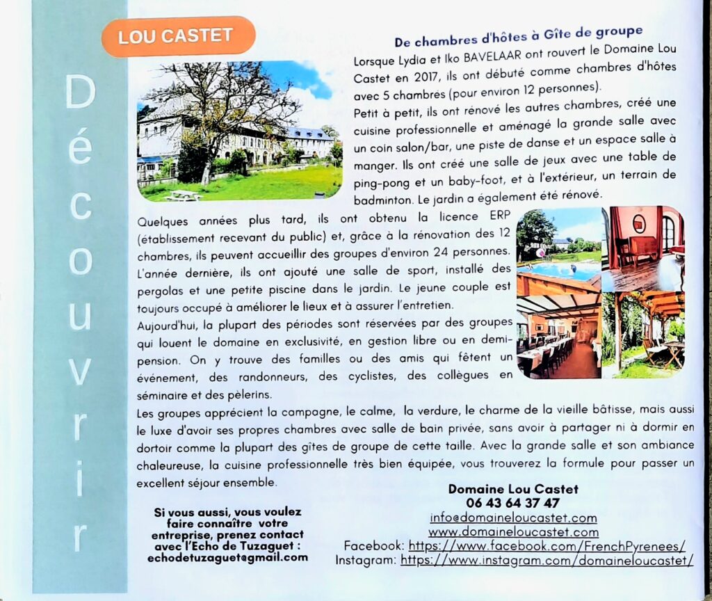 “Tuzaguet est un petit village des Hautes-Pyrénées . Ses habitants sont appelés les Tuzaguetois et les Tuzaguetoises. Situé à 516 mètres d’altitude, la Rivière la Neste, le Ruisseau de la Baquère, le Ruisseau de la Torte sont les principaux cours d’eau qui traversent la commune de Tuzaguet. Entouré par les communes de Cantaous, Bizous et Anères, Tuzaguet est situé à 7 km au sud-est de Lannemezan la plus grande ville à proximité”.